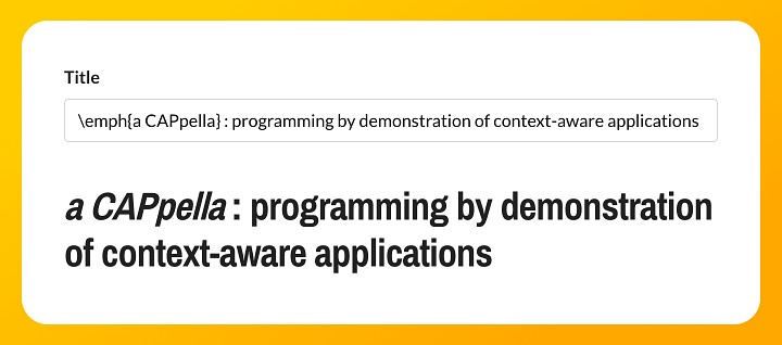 Also, some people use \emph{} to add emphasis to words in their publication titles. These words will be rendered as italics in Owlstown webpages.